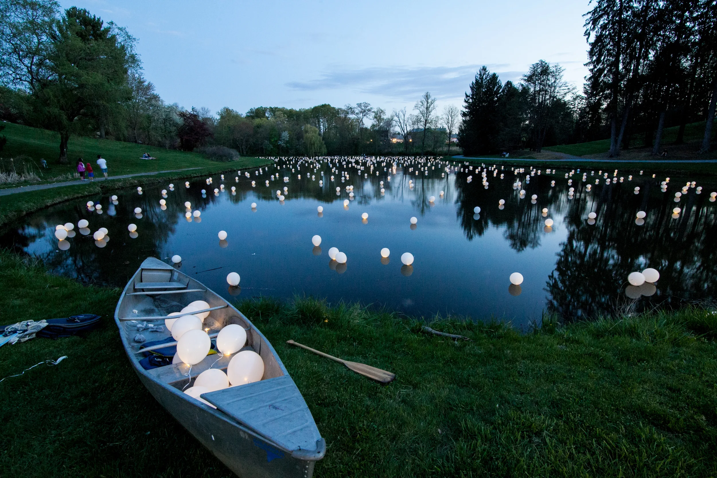 Night LightNight Light was a one-night site-specific installation on Vassar’s Sunset Lake. The event was attended by upwards of 700 students and residents of Poughkeepsie. There were performances by school musicians, and local food venders sold food. The installation took a team of twenty over ten hours to install.Inspired by Providence’s Water Fire and Oak Bluff’s Grand Illumination Night, two events that use light and music to activate space, Night Light is a study in how simple art pieces can activate community spaces.The thesis event was funded by a grant from Vassar’s Dean’s office.